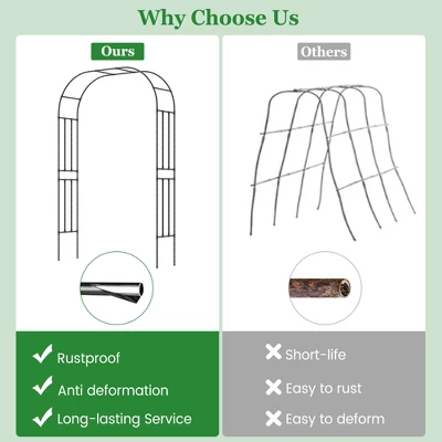 - Selected Metal Tubes: This garden arch trellis features premium metal tubes, which is high resistance to withstand the elements. The protective PE coating against corrosion, while preventing plants from being burned. Plus, the spiral rods within are designed for easy attachment of climbing plants.