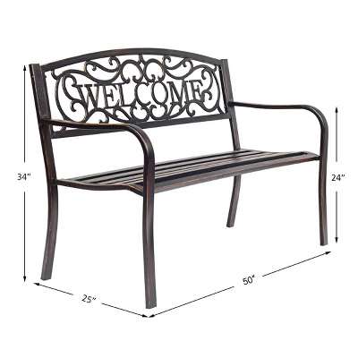 - 【Stylish Design & Welcome Pattern】The backrest of this patio garden bench features lively floral patterns and exquisite “welcome” embellishment which make the whole bench look elegant and sweet. Besides, in addition to its functional role, this bench can serve as a nice ornament and can match any style of garden or patio.