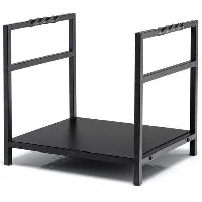 Are you looking for a firewood rack for your fire pit,fireplace or wood burning stove? This practical firewood holder with convenient handles will be a great choice for you. Made of sturdy steel frame with rustproof finish,the firewood rack is long-lasting and weather-resistant for longer service. And it can hold up to 110 lbs without deformation. Measuring at 13.5″ in width,this storage rack has ample space to orderly store the firewood. With compact size,you can easily place it in any corner of your home when not in use. Besides,the log holder with raised feet is perfect for storing and stacking logs or stakes to keep firewood ventilated and dry.