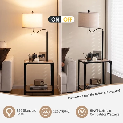 - Easy to Assemble: After a simple installation, you can place this floor lamp with table wherever you want. And the adjustable foot pads keep this end table lamp stable on different grounds. Here is some information you may want to know. It fits the E26 standard base and works with 60W maximum compatible wattage.