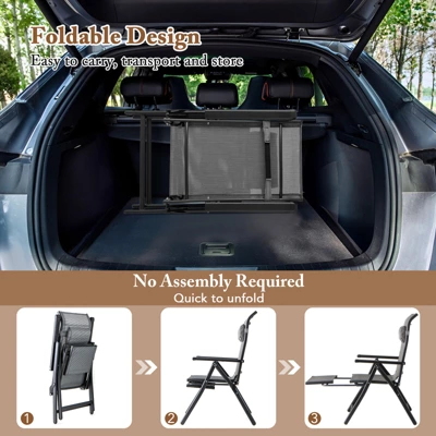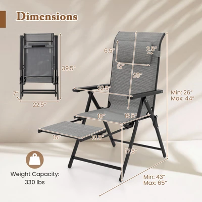 - Retractable Ergonomic Footrests: The folding patio chairs are equipped with retractable footrests, providing you with added support for your legs. When not in use, the footrests can also be folded under the chairs, saving space and accommodating different requirements.