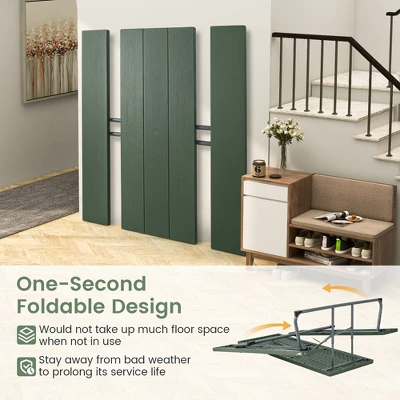 A Versatile and Convenient Outdoor Seating Solution for All Your Gatherings!Our folding picnic table set includes a rectangular table and 2 benches. The table measures 72″ x 29″ x 29″ (L x W x H), and the bench measures 72″ x 11.5″ x 18″ (L x W x H), which can comfortably accommodate up to 8 people. In contrast to other wooden tables or metal tables, our HDPE tabletop is fade-resistant, weather-resistant, crack-resistant, and ultraviolet-resistant, lasting for years to come. And the heavy-duty powder-coated metal frame ensures good sturdiness and stability. More than that, this table set can be easily folded and stored away, saving valuable space when not in use.