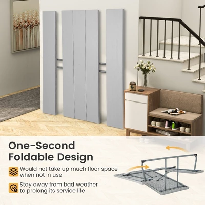 Tangkula Folding Picnic Table W/ 2 Benches 6 FT Camping Table Set W/ All-Weather HDPE Tabletop Grey