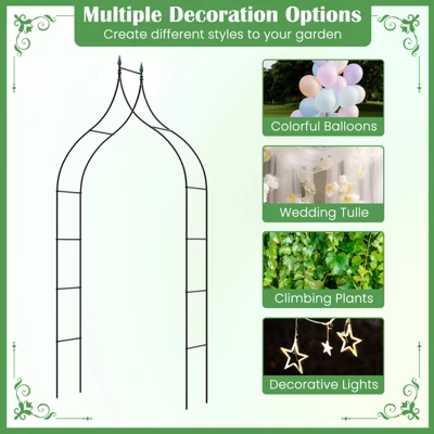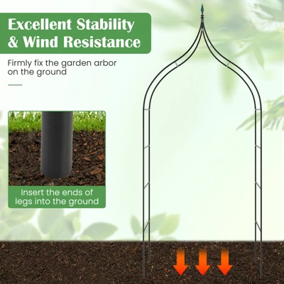 - Gothic Beauty : The decorative garden arbor features Gothic inspired spires with delicate curves and pointed arches, creating a dramatic and ornate visual appeal. Besides, multiple side crossbars provide enough space for hanging decorations.
