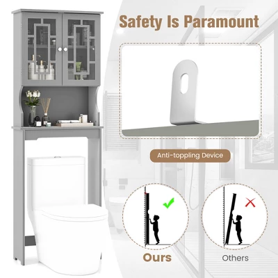 Tangkula Grey Bathroom Over The Toilet Space Saver Storage Cabinet Organizer Shelf