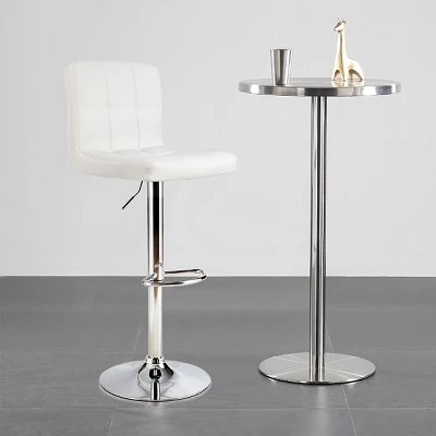 This is our brand new round bar stool, made of high-quality steel frames and water-proof PU leather, sturdy and durable. Its white quadrate cushion which filled with high density stereotypes sponges provides maximum comfort for you.Its simple but elegant design makes it perfect for home, bar,restaurant, company etc. The height of the seat can be adjusted from 24.5″ to 32.5″ to well meet your needs. Moreover,it can rotate 360 degrees, very convenient! The curved backrest can support your waist when you sit on the stool. Worth having!