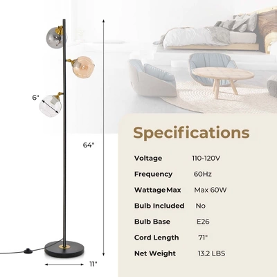 This 3-color globe shades floor lamp will be a versatile and stylish addition to any indoor occasions.