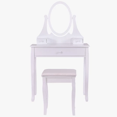 - 【Pretty Dressing Table with 3 Functional Drawers】Our makeup table comes with 3 drawers, 2 on the mirror stand and 1 large drawer with the table. Large cosmetics like eyeshadow compact can be put in the drawers while small items like nail polish, earrings or lipsticks can be stored on tabletop boxes.