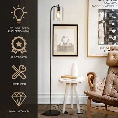 - Industrial Floor Lamp: Our metal floor lamp has a unique industrial design that can quickly catch the attention of other guests and impress them. The special transparent glass lampshade makes it ideal for multiple styles of decoration, such as minimalist, industrial and mid-century.