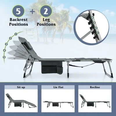 - [Instant Relaxation, No Assembly Required]: Designed for leisure seekers, this folding tanning chair is ready to use in a snap – no assembly needed. Simply unfold and start unwinding in your favorite outdoor spots like the patio, balcony, beach, or poolside. The quick adjustment mechanism lets you effortlessly find your perfect lounging position for maximum comfort.