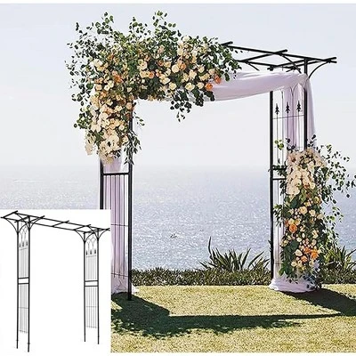 - 【Elegant Look & DIY Decorations】: This trellis archway features clean lines and floral elements to create a vintage and elegant look. It provides a large area for climbing plants and vines to grow, which can also be decorated with balloons, star lights or tulle.