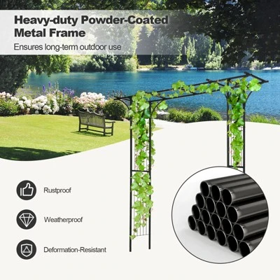 - 【Heavy-duty Metal Frame】: Constructed of heavy-duty metal tubes, this garden arch is strong and resistant to deformation. The powder coated finish enhances its durability and weather resistance. It is suitable for both indoor and outdoor use. Overall Dimensions: 81” x 20.5” x 88” (W x D x H)