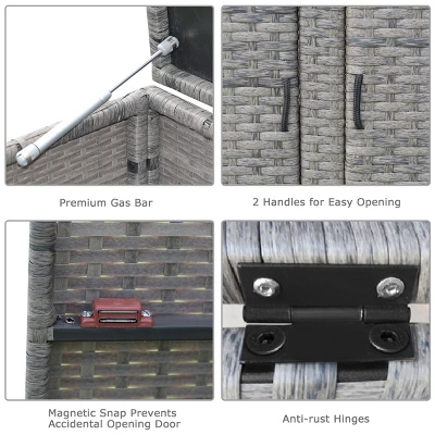 - Flip Cover & Two Doors: Our rattan storage box can be opened in multiple directions for convenient storing or taking. The flip cover on the top is supported by two premium gas bars for easy opening and closing.