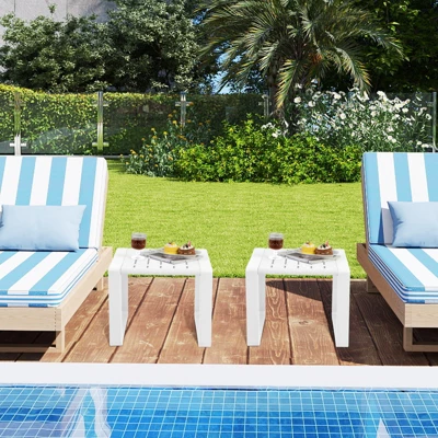 Perfect for those who enjoy entertaining or simply like to relax outdoors, the side tables offers practicality and style in equal measure. Enjoy year-round durability with this set of patio end tables, crafted from weather-resistant PP material. Each table is equipped with non-slip foot pads, enhancing stability while protecting your floor surfaces from scratches. Compact yet functional, these side tables provide a convenient surface for your morning coffee, afternoon tea, or evening drinks. They are lightweight and easy to move, allowing you to reconfigure your outdoor setup as needed for guests or personal comfort.