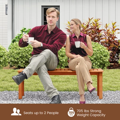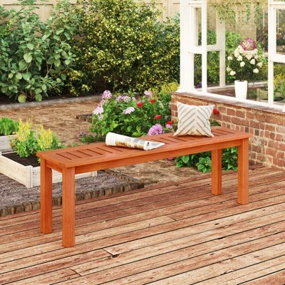 Crafted from premium solid wood with a teak oil finish, the garden bench is built to last and adds a timeless aesthetic to outdoor spaces. Plus, it comfortably seats up 2 people with a 705 lbs strong weight capacity. The reliable construction features reinforced corners for stability and a slatted seat for easy maintenance. Versatile in style, this backless wood bench fits perfectly in outdoor settings and can also be used as a shoe bench indoors. Easy to assemble with all necessary hardware included, you’ll be enjoying your new seating area in no time.