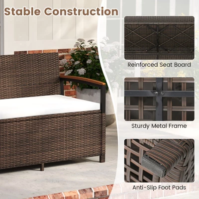 - Versatile Outdoor Bench: Designed with a full-length backrest and acacia wood armrests, this patio organizer loveseat can accommodate 2 people and support up to 800 lbs. It is a stylish and practical addition to your porch, patio, or poolside area. Note: Please avoid rain exposure for prolonged service life.