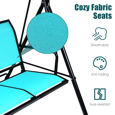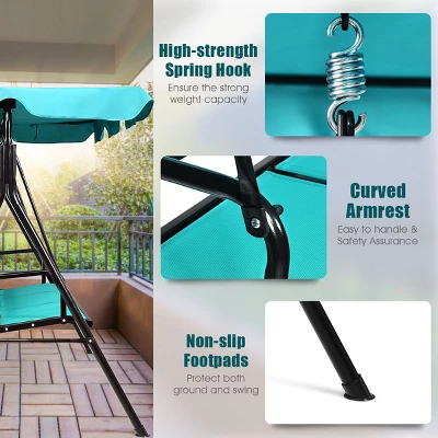 - 【Quality Details】: Our patio swing is designed with a long-lasting triangular frame, which increases the stability and safety of the swing. This shade swing is also equipped with 4 plastic non-slip feet, which makes it safe to use even in rainy weather and can prevent the floor from being scratched.