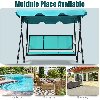 Enjoy the wonderful weather with your friends and family by lounging on our new 3 person canopy swing chair. The frame is made of long-lasting powder coated steel with a water resistant polyester canopy for extra shade. Spacious seat allows 3 people sitting on and sturdy base ensures stability. Arm rests on each side, which ensure the safety. It will be a good addition to your home.