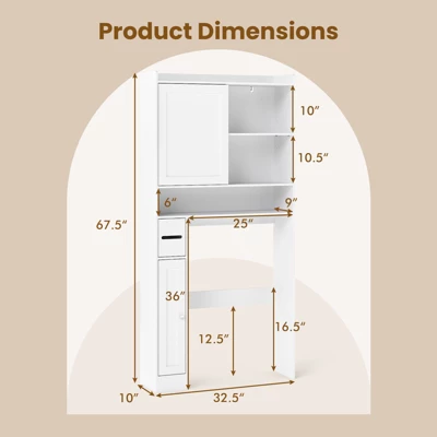 Tangkula Over The Toilet Cabinet Space-saving Bathroom Storage Organizer W/ Sliding Door