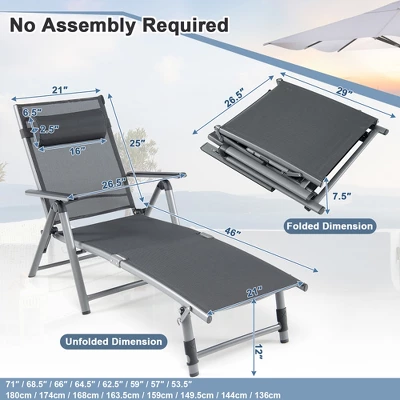 - No Assembly Requirements: This patio chaise lounge has been fully assembled before delivery. You can unfold it and use it directly after its arrival.