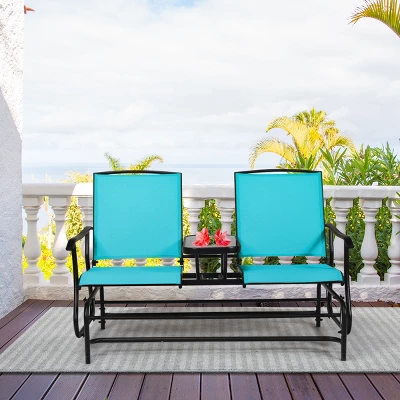 - Easy Assembly & Dimensions: With detailed instruction and complete accessories, this 2 person glider chair is easy and quick to assemble. Besides, the smooth and waterproof glass tabletop is easy to clean with damp cloth after use.
