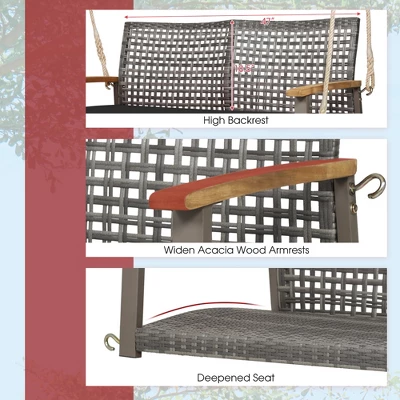 - Perfect for 2 Persons: The deepened seat offers ample space for up to 2 people to swing or relax together. Besides,the 2-seat porch swing with stylish mix gray PE rattan will add a sense of elegance to your indoor and outdoor places,which also fits well with a wooden or steel swing stand.