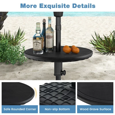 Are you looking for a premium all-weather umbrella table? Look no further! Crafted from premium PE material, our portable round table top is waterproof, wear-resistant, and perfect for harsh outdoor environments. The adjustable height feature, paired with a sturdy frame and distributed force design, ensures optimal strength and stability, preventing any bending. Besides, with ample space for your essentials, this umbrella table is versatile, portable, and lightweight, making it ideal for various applications, such as backyard parties and beach outings.