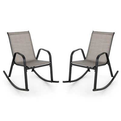 Enjoy the ultimate comfort of gentle breezes with your significant other on our set of two rocking chairs!Each chair is designed with ergonomics in mind, featuring curved armrests and a backrest that will make you feel incredibly comfortable when seated. The sturdy rocking base provides a gentle rocking motion and is equipped with bottom stoppers for added safety. Moreover, these rocking chairs boast exceptional durability, thanks to their super solid metal frame and firm screw connections that enhance overall stability. The seats and backs are made of breathable and quick-drying fabric, ensuring a cool and comfortable sitting experience. Whether you’re seeking snug chairs for outdoor relaxation, these two rocking chairs will be the perfect fit for you.