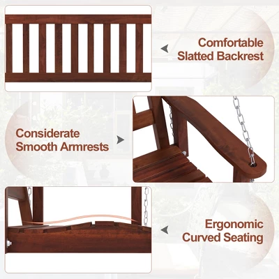 Tangkula Wooden Porch Swing 2-Person Hanging Swing Chair W/ Adjustable Galvanized Metal Chains